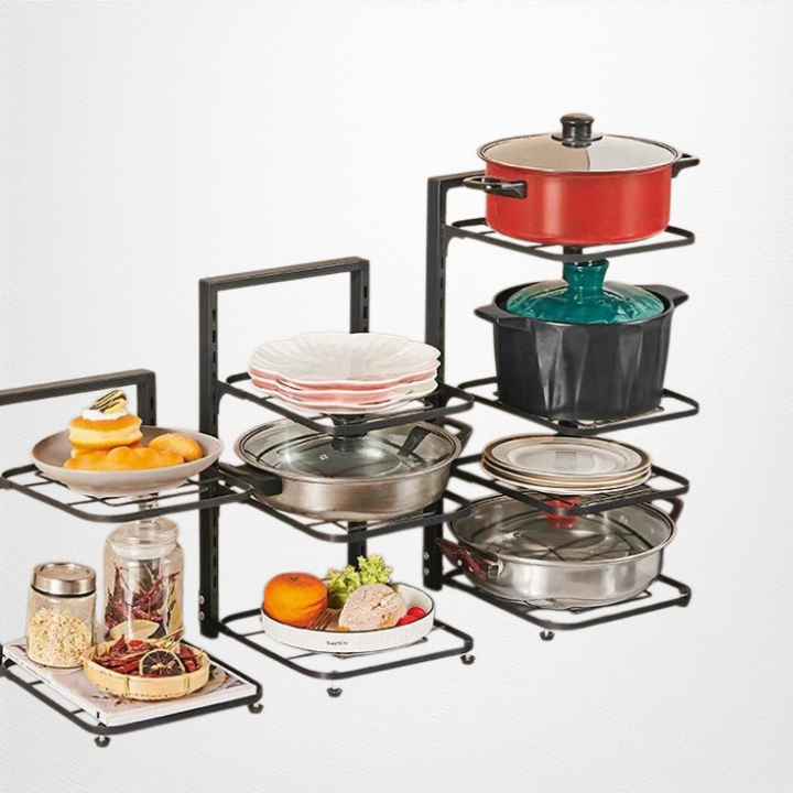 Maximize kitchen space with a durable pot rack. Easy installation, strong load-bearing, organized storage, rust-resistant material, fits various pot sizes.