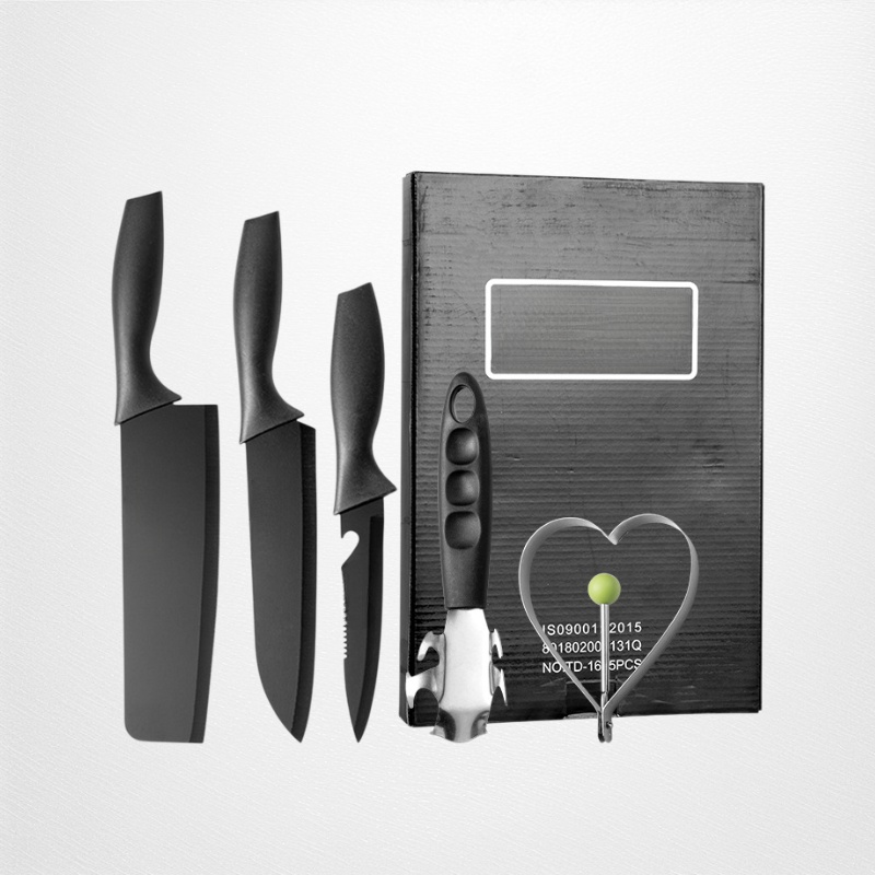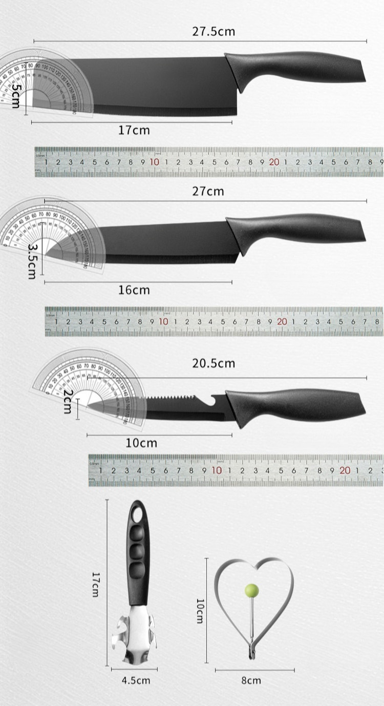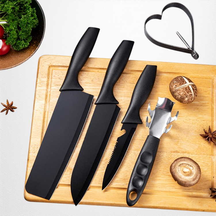 Premium stainless steel knife set, sharp blades for precise cutting, ergonomic handles for comfort, durable construction, easy to clean, suitable for all kitchen tasks.